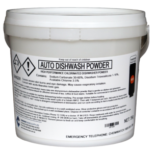 A powder detergent for commercial or domestic dishwasher machines. Non-caustic formulation to be added manually.