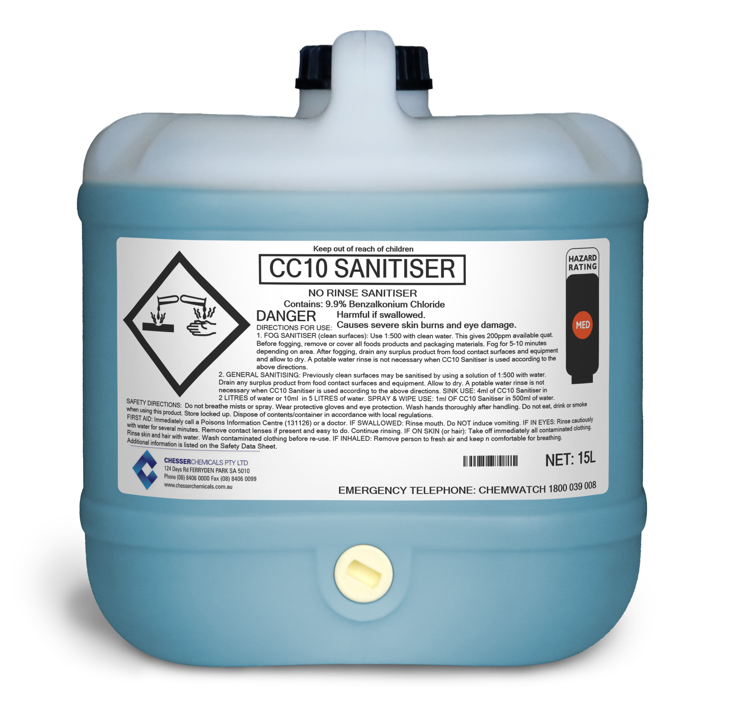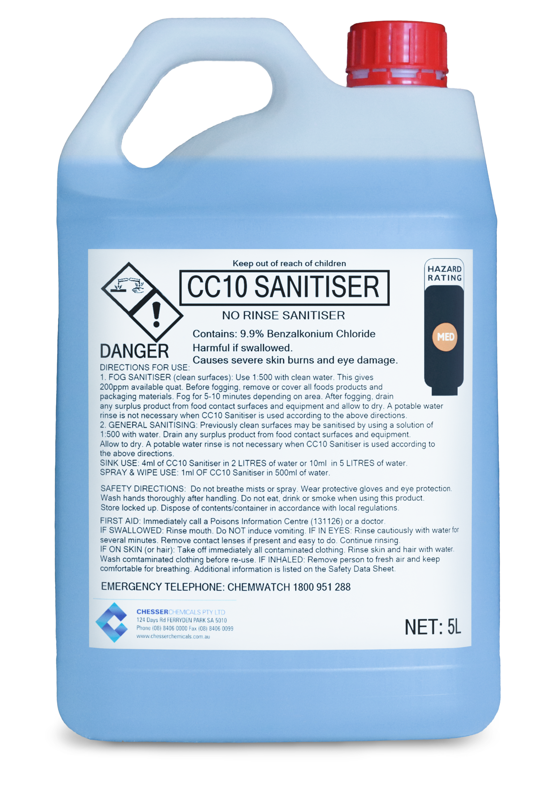 A concentrated quaternary based sanitiser. Use dilution varies from 1 :200 to 1:500. Rinse off or leave on.