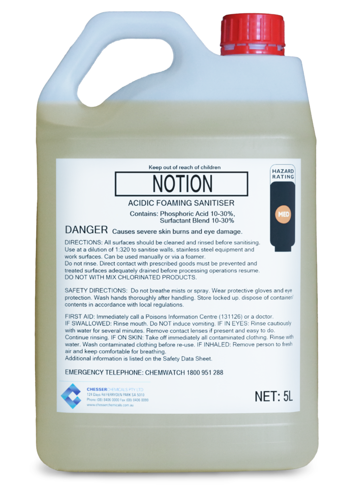 An acid no-rinse sanitiser designed as the final rinse step in the cleaning procedure for heavily soiled conditions in animal slaughter houses and abattoirs. It is highly concentrated and is shown to give a greater than Log 5 reduction in viable bacteria at 1 :320 dilution. It is effective in hard water areas.